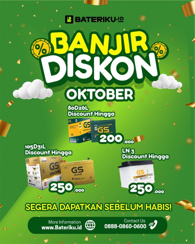 Kali ini, bulan Oktober 2025, Bateriku.id ngadain banjir diskon aki mobil yang bener-bener worth it. Kami pengen cerita dikit tentang promo ini, siapa tahu Anda juga lagi ngalamin hal yang sama kayak Kami dulu — mobil susah starter, aki udah lemah, tapi pengen ganti tanpa bikin dompet jebol.